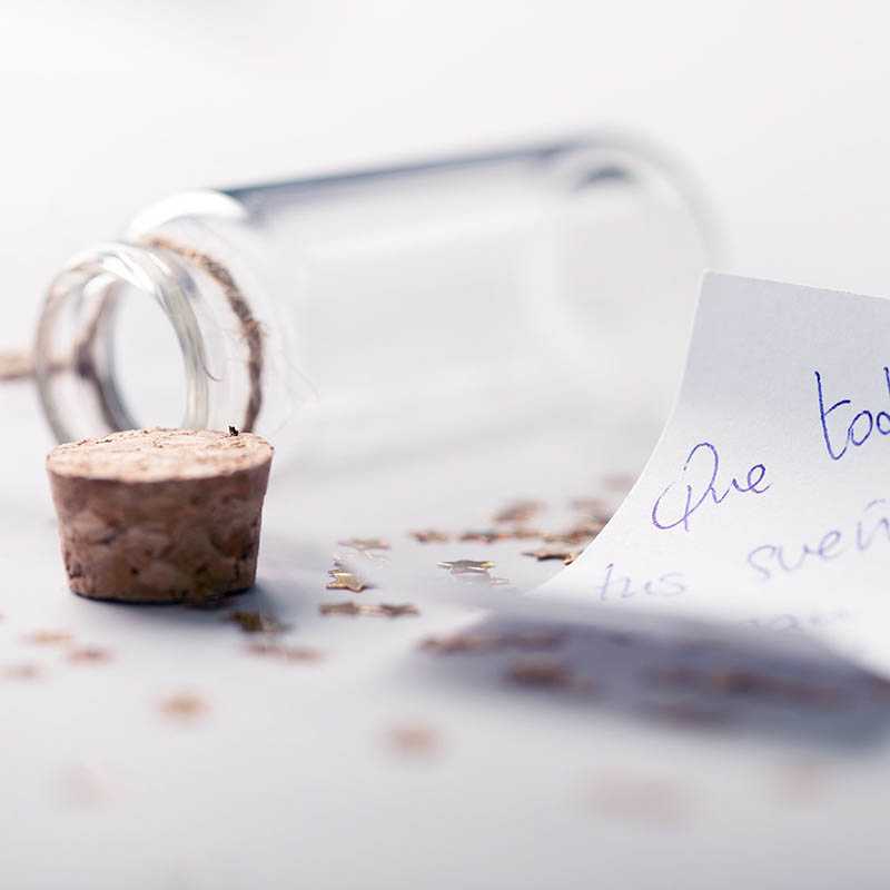 NOVINKA 2025. Small bottle for keeping your best wishes in the coming christmas season. Including a paper parchment and a glass bottle. With lid and hanging ribbon, presented in a white individual box.