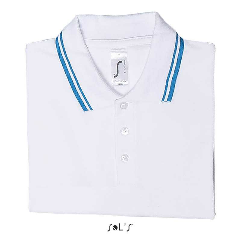 QUALITY - 200 PIQUÉ;100% Ringspun cotton;Rib 1x1 collar and cuffs;Reinforcing tape on neckline;STYLE - CLASSIC & ELEGANT;Short sleeves;Contrasting stripes on collar and cuffs;Tone on tone 3 button placket;Fitted cut;Cut and sewn;Side slits;Spare button on