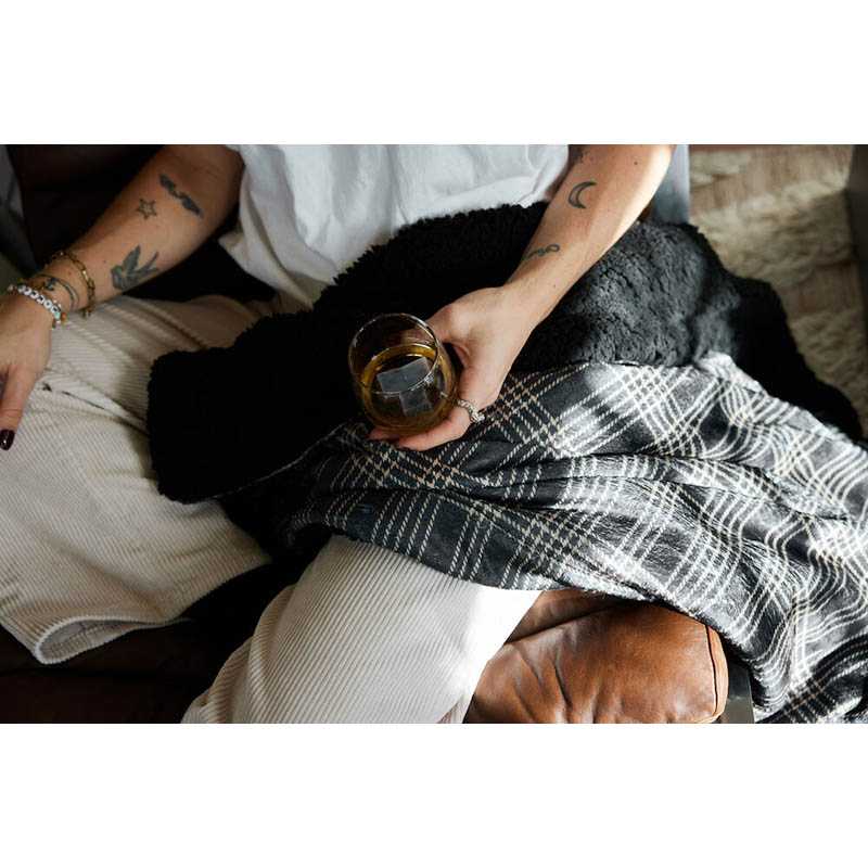 Check pattern – celebrated, trendy, retro and most of all loved! The perfect mix of classic and contemporary checks has come true in blanket Rut. On one side the blanket is made of sherpa, a fluffy material that reminds of sheep wool. On the other side you’ll find soft fleece. Rut has a dark base with golden lines – to make sure it will look great in all homes. Delivered in a lovely gift box. Material: 100% polyester, 220/180gsm Size: 130x170cm