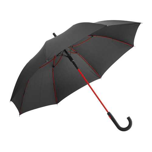Convenient automatic function for quick opening, high-quality windproof system for maximum frame flexibility in stormy conditions, flexible fibreglass ribs, lightweight but strong aluminium shaft, water and dirt-repellent cover properties through original Teflon™ fabric protector, straight handle with black soft material and promotional labelling option