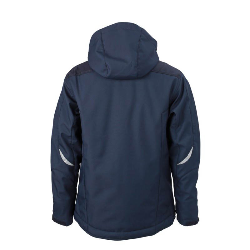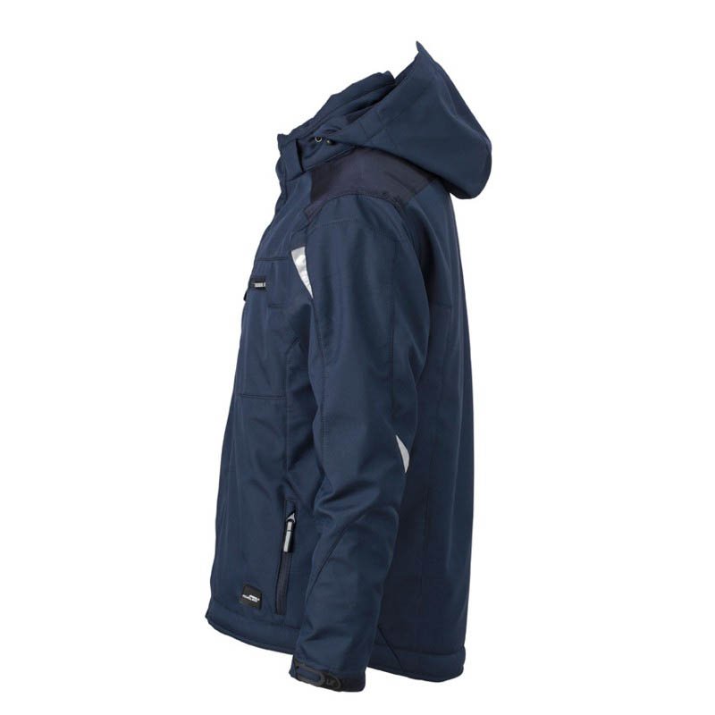3vrstvý softshell s membránou, voděodolný, větruodolný a prodyšný materiál, rovný střih s bočními švy, celopropínací reverzní spirálový zip s krytkou brady, lemy rukávů nastavitelné suchým zipem, dolní lem na stažení elastickou šňůrkou, kapsy s reverzním