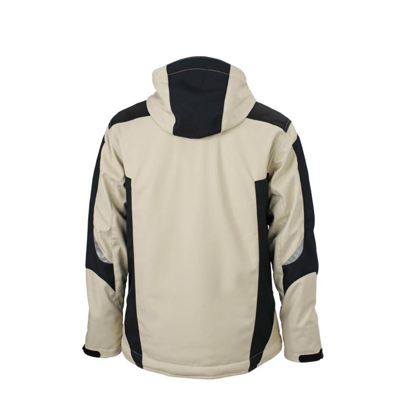 3vrstvý softshell s membránou, voděodolný, větruodolný a prodyšný materiál, rovný střih s bočními švy, celopropínací reverzní spirálový zip s krytkou brady, lemy rukávů nastavitelné suchým zipem, dolní lem na stažení elastickou šňůrkou, kapsy s reverzním