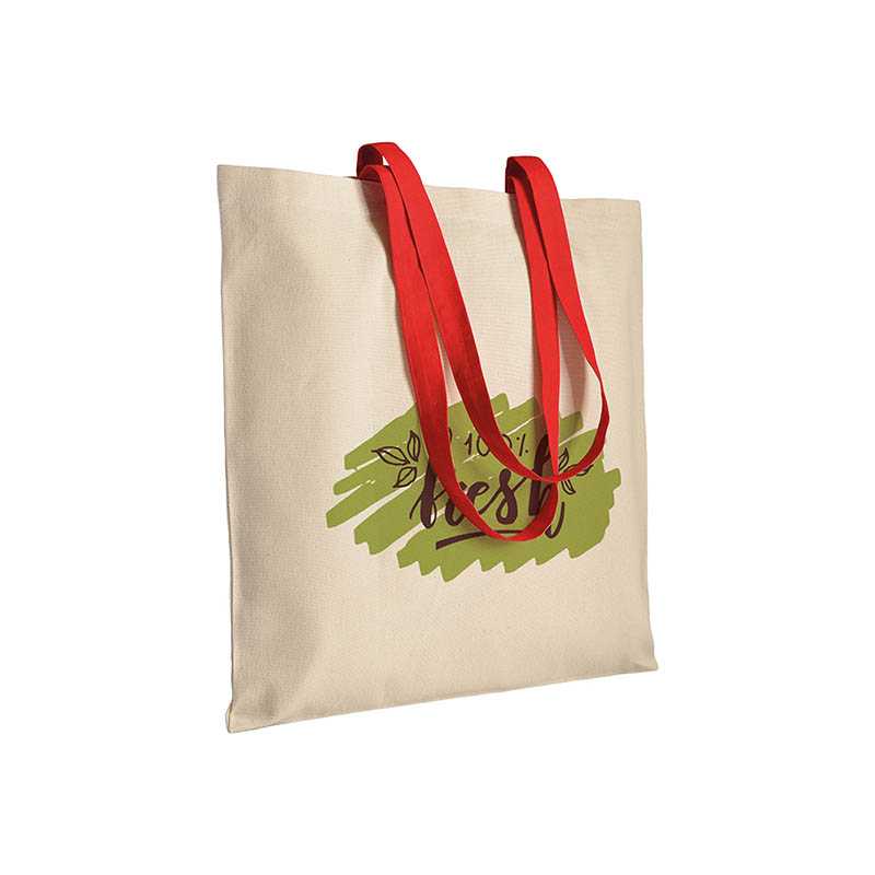 220 g/m2 natural cotton shopping bag with coloured long handles