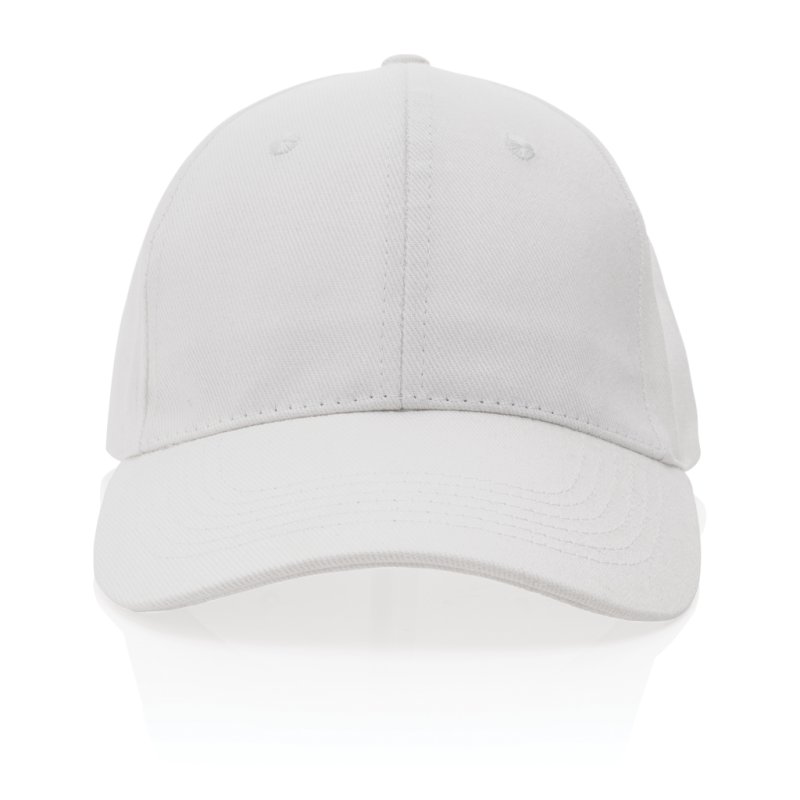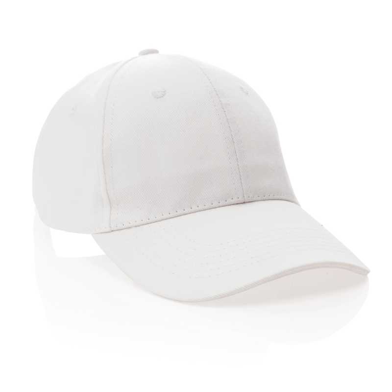 7-panel cap. 100% cotton. Twill. 450 g/m2. One size. 6 openings for ventilation, embroidered in the same color. Inner seam cover in the same color with an engraving. Printed plastic cl