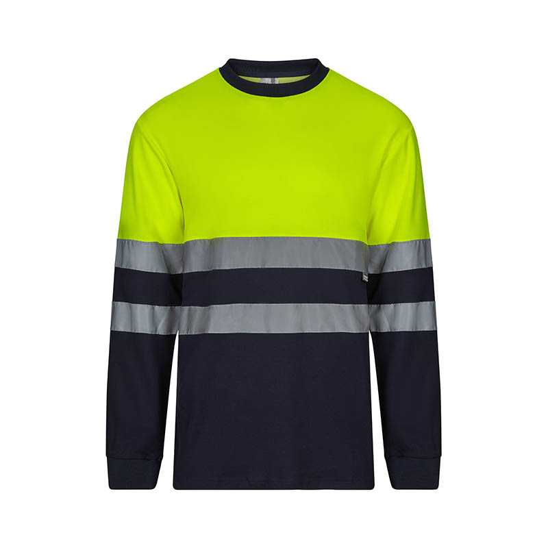 Ribbed Round Neck Reflective tapes on torso and sleeves Base fabric tape covering the neck seam Ribbed cuffs