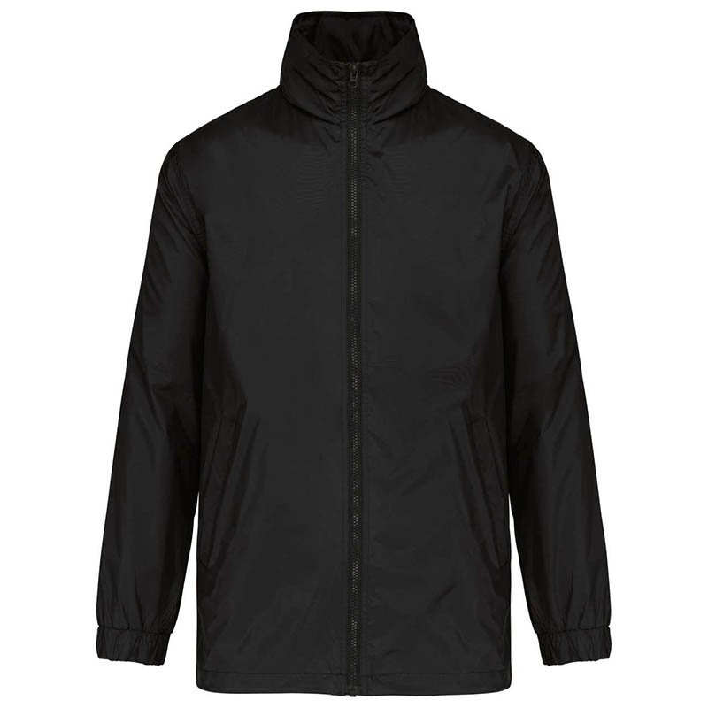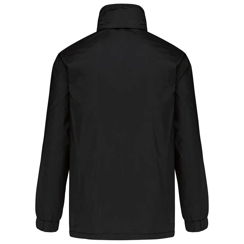 100 % polyamid 210 T s akrylovou úpravou.Šedá podšívka z 100 % polyesterového žerzeje.Skrytá kapuce s pružnou stahovací šňůrkou.Přední zapínání na zip.1 vnitřní kapsa a 2 přední kapsy.Pružná stahovací šňůrka s knoflíky na lemu.Přístup na zip pro ozdobení.