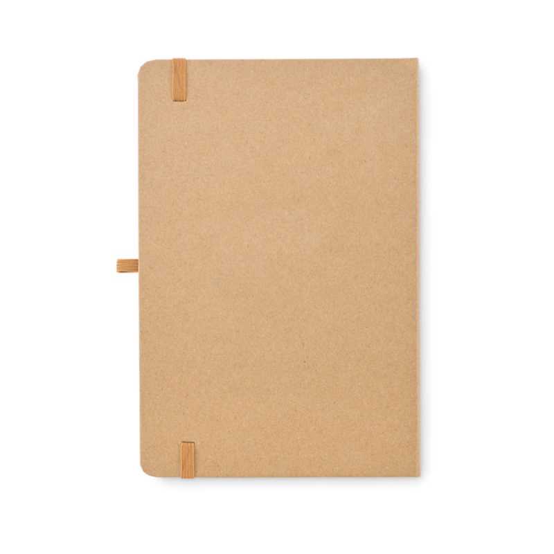 Zápisník A5 v tvrdých PVC deskách. 192 čtverečkovaných stránek (96 listů) recyklovaného papíru. Uzavírací gumička a záložka.