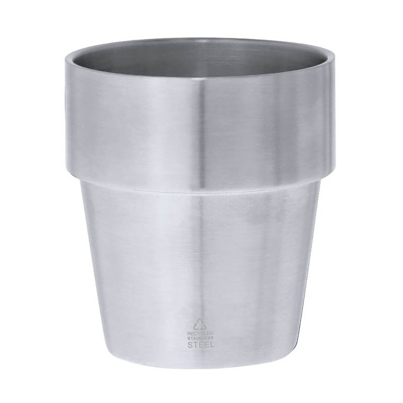 NOVINKA 2025. Thermal cup made from recycled stainless steel with double wall and 250 ml capacity. Coating in satin color and edge and interior in satin stainless color. With recycled stainless steel logo.Stainless steel is one of the most demanded materials and can be found almost everywhere, from daily use products to large constructions. With countless properties, including durability and a high degree of reuse, making it a highly valued alternative in sustainability solutions. Properly treated, it allows for obtaining new resources of infinite use.