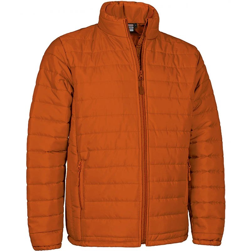 Quilted Jacket with Thermal Effect. Made of water-repellent flat weave outer Loft fabric, smooth inner lining and inner quilting for ensuring excellent thermal insulation through channels. Stand-up double layer collar with full-zip front closure including a chin guard for warmth and comfort.Straight-cut waist with adjustable elastic drawstring and stopper for a better fit and added comfort. Two vertical zippered waist pockets and an inner velcro pocket for a secure and convenient storage.Includes an inside back zip for easy marking with different methods: screen printing, embroidery, transfer printing, shields, vinyl application.Ideal as promotional clothing and casual wear.