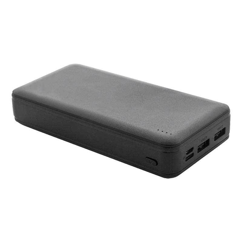 NOVINKA 2025 XMASS. Power banka z recyklovaného ABS plastu s batériou 20 000 mAh. S 2 USB a 1 nabíjacím portom USB-C. Vstupné porty micro USB a USB-C. Vrátane nabíjacieho kábla USB.