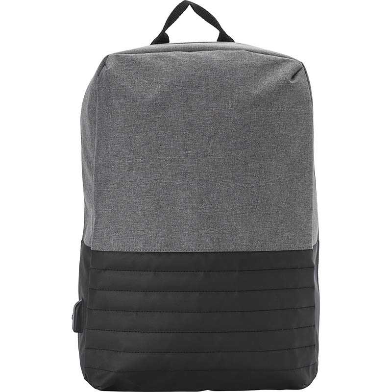 PVC (600D + 300D) anti-theft backpack with adjustable and padded shoulder straps, as well as a padded back. Large main compartment with a zipper and padded laptop compartment (15 inch). USB port on the exterior, with a cable on the interior.