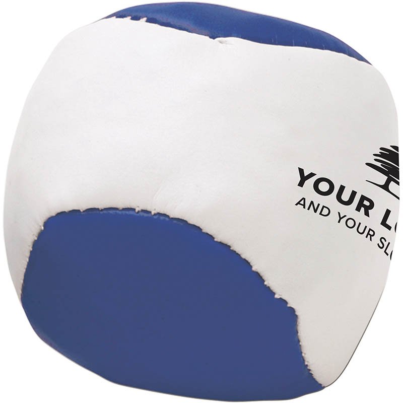 Imitation leather juggling ball. This item can only be printed in the colors black, white, gold or silver.