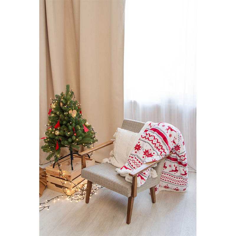 Dvouvrstvá vánoční deka ze 230 g/m2 flanelového fleecu RPET a oboustrannou podšívkou z RPET sherpa fleecu 210 g/m2. Zabalené do stuhy a potisknutelné papírové karty.