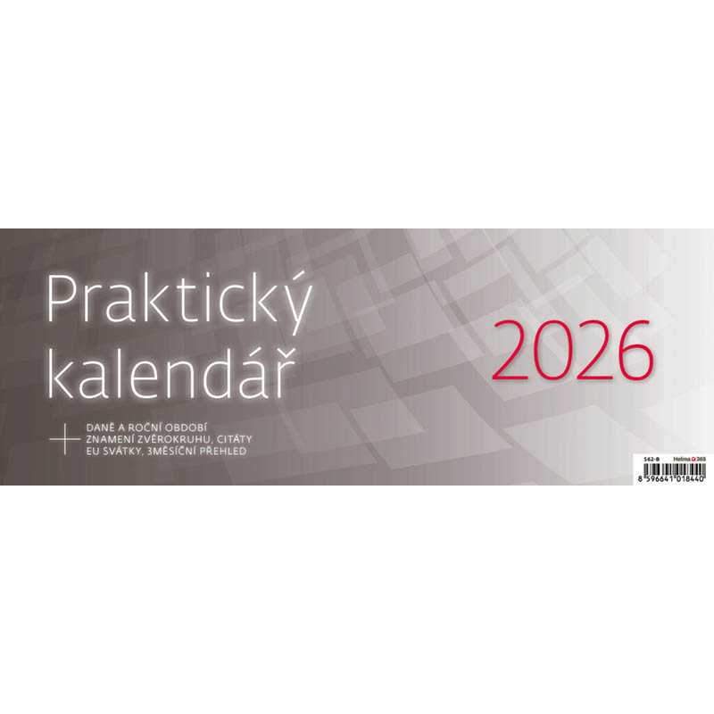 Formát kalendáře: 32,1 x 13,4 cm . Kalendárium: české týdenní sloupcové . Počet stran kalendáře: 60 + 2 . Stojánek: se zámkem . Prostor pro přítisk: 32,1 x 3,5 cm . + daně, roční období, znamení zvěrokruhu, EU svátky, 3měsíční přehled