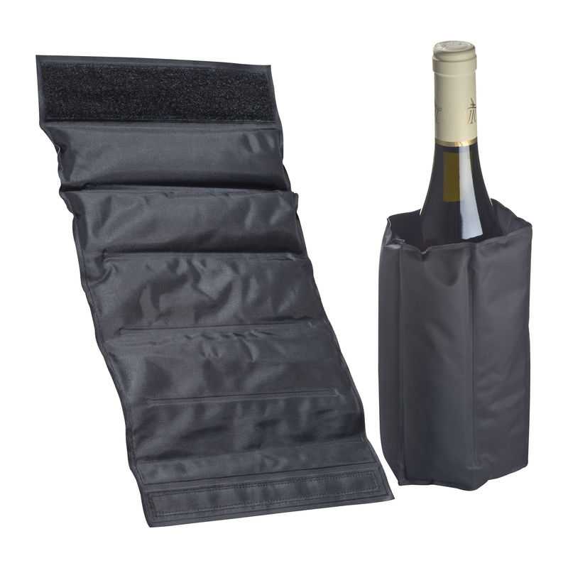Elegantní černý chladič na láhev se suchým zipem, s integrovanou chladící podložkou s chladícím gelem uvnitř. Ideální pro chlazení všech typů lahví. Jako potisk doporučujeme sítotisk.