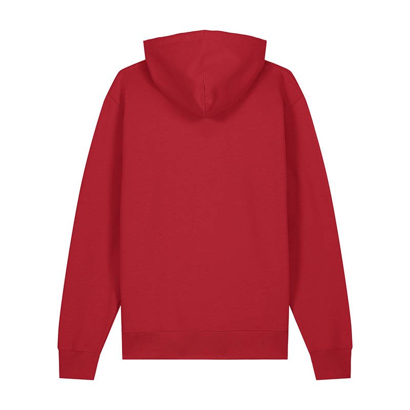 Kruhově dopřádaná bavlna. Designová dvouvrstvá kapuce. Velká klokaní kapsa. Kapsa na rukávu se zipem. Manžety ze sladěné tkaniny