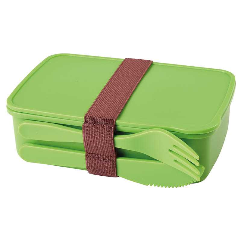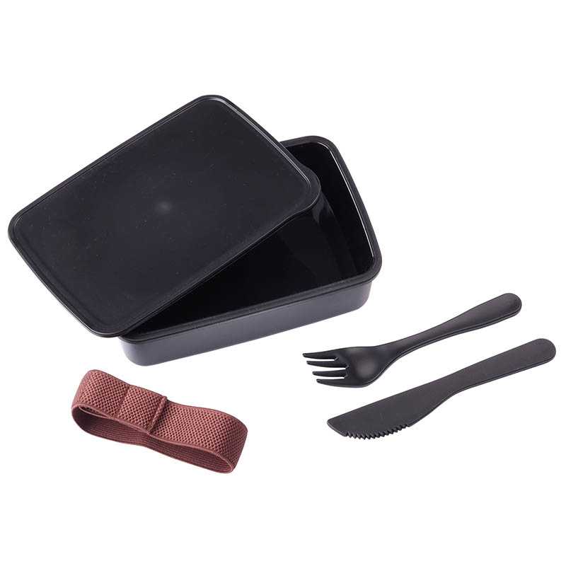 Box na jídlo z PP plastu se sadou příborů (nůž a vidlička) a elastickým popruhem. 700 ml.