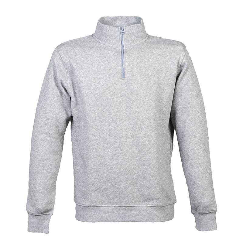 80% cotton - 20% polyester sweater - Ribbed collar - Short zip - Ribbed cuffs and band at waist - Tape inside collar - Stiching