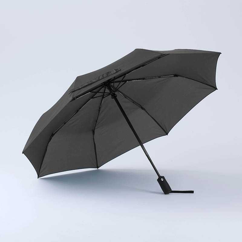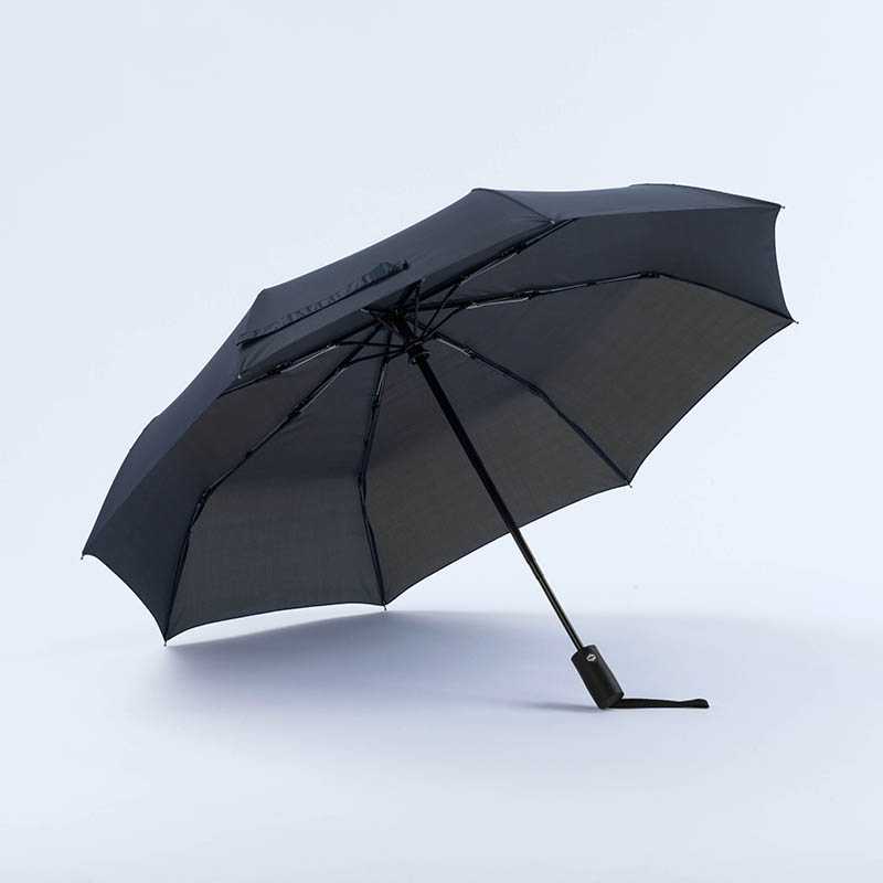 Luxusní 23 palcový automatický deštník ze 190T potah materiálu, černá kovová konstrukce. Černé ABS pogumované držadlo. 2 skládací sekce. Ladící pouzdro.