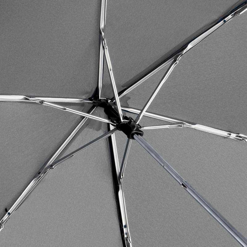 High-quality Windproof PLUS system for maximum frame flexibility in stormy conditions, chromed steel shaft, extra lightweight cover, flat Soft-Touch handle with promotional labelling option, carry case with practical snap hook for fixing on backpack or bag, suitable for handbag due to its extreme light weight, space-saving extra flat execution