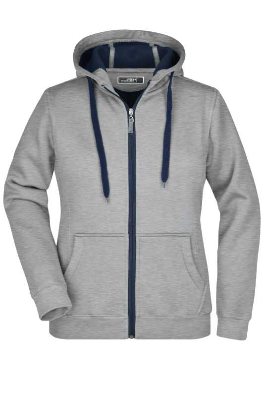 Dámská mikina James & Nicholson s kapucí..Vnější materiál: 100% bavlna.Podšívka: 100% polyester.Zip, šňůrky a vnitřek v kontrastní barvě .Kapuce s ochranou brady .Rukávy a pas s elastanem, klokanní kapsa, ploché švy .Zúžený tvar .Hmotnost: 380 g / m2.Bale