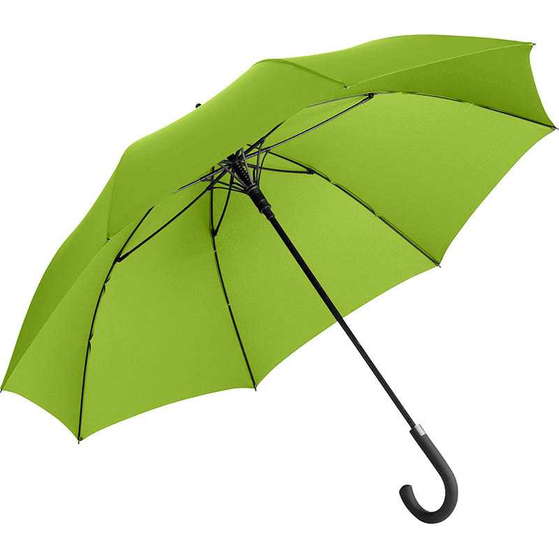 Convenient automatic function for quick opening, high-quality Windproof PLUS system for maximum frame flexibility in stormy conditions, flexible fibreglass ribs, sturdy fibreglass shaft, water and dirt-repellent cover properties through original Teflon™ fabric protector, with waterSAVE® label on the closing strap (with new deliveries), Soft-Touch crook handle with integrated push-button (suitable for laser print), large, accommodating diameter