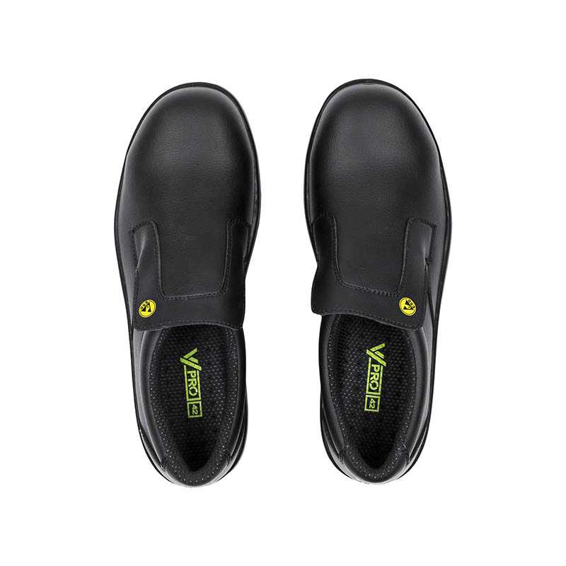 Standard: EN ISO 20347:2012 O1 SRC Upper material: Microfiber leather. Velcro. Padded collar. Outsole: Dual density PU. Maximum slip resistance: SRC.