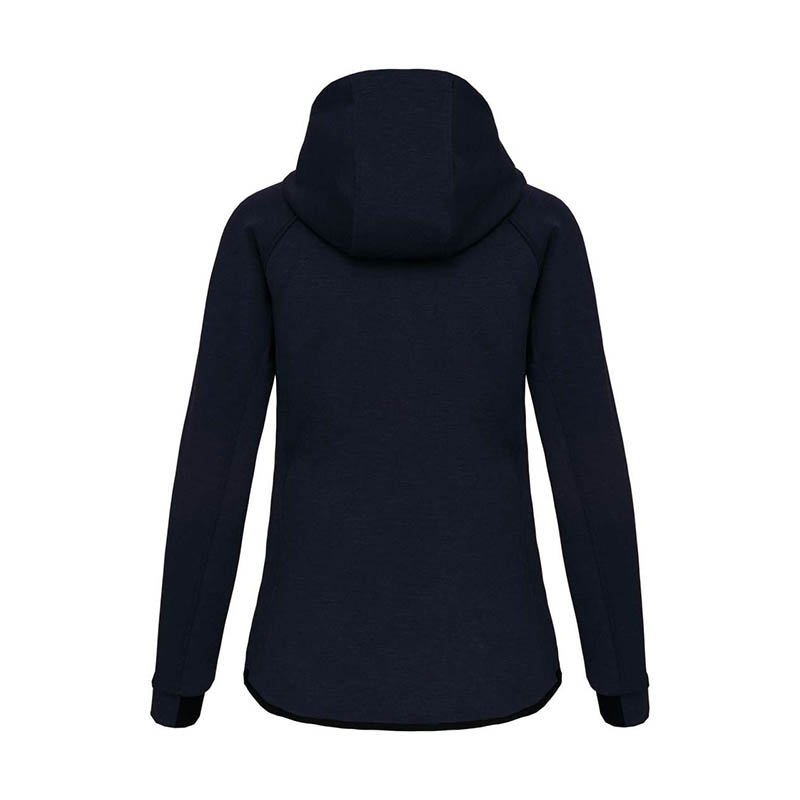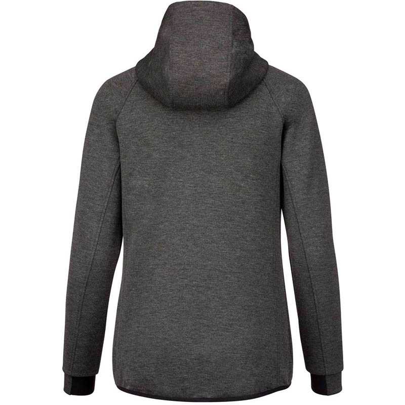 94 % polyester/ 6 % elastan.(Vřesové barvy: 79 % polyester / 15 % viskóza / 6 % elastan).Vysoce příjemná tkanina.Zapínání na zip.2 přední kapsy na zip s vyztuženými švy.Kapuce s podšívkou z 65 % polyesteru / 35 % viskózy a dvoubarevnou stahovací šňůrkou s plastovými koncovkami.Manžety s kontrastním pružným dílem.Kontrastní lemování na lemu a kontrastní.zipy - černá na všech barvách a tmavě šedá na barvě Ash Heather.
