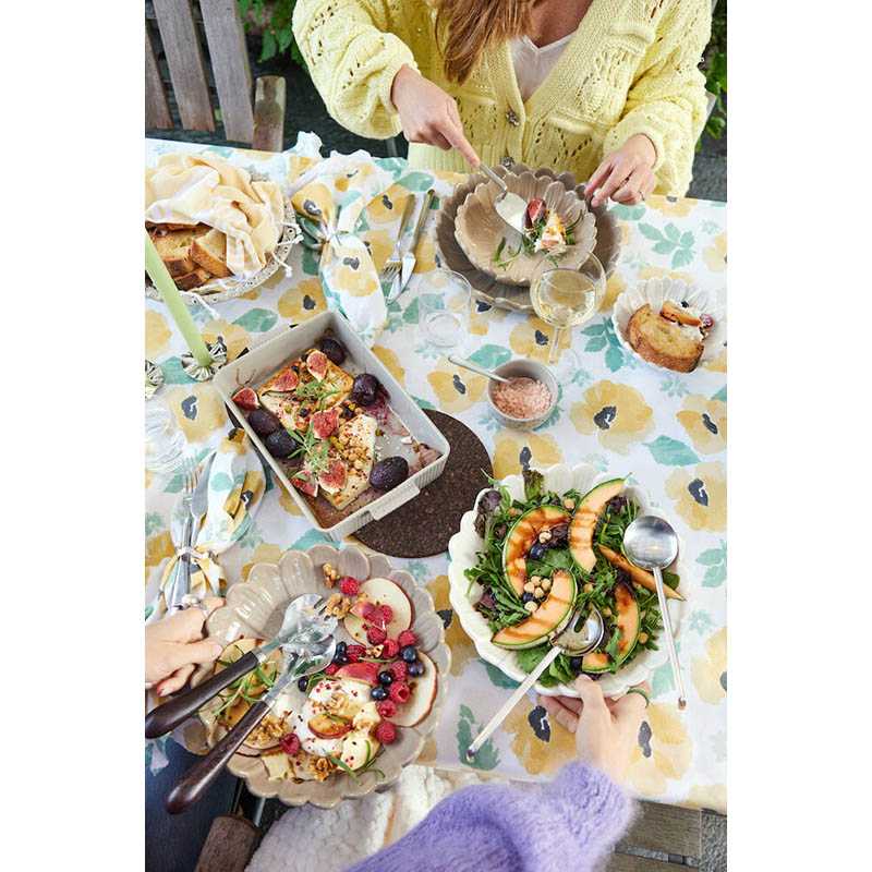 Eden kitchen towel is a beautifully patterned towel in thin, woven recycled cotton (70%) and polyester (30%). The pattern is carefully produced with painted flowers in soft yellow and beige pastels. A towel that looks lovely in both the kitchen and the bathroom. It dries quickly and is easy to hang up. Available in size 50x70 cm. Packaged in nice paper girdle. Sold in 2-pcs.
