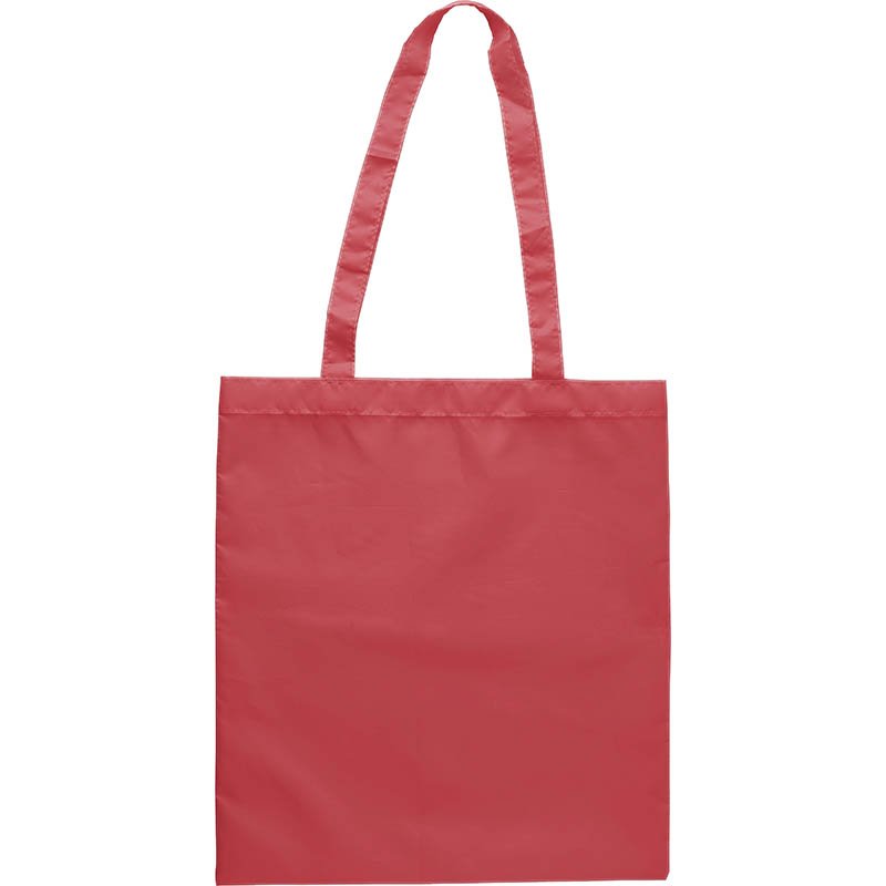 Skládací nákupní taška z RPET polyesteru, s etiketou s označením RPET.