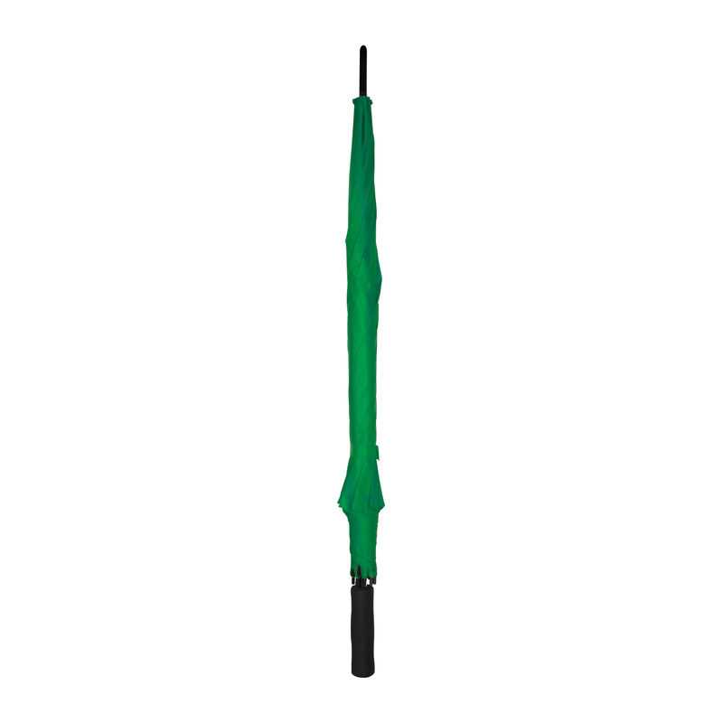 Vysoce kvalitní automatický deštník s kostrou ze skleněných vláken, potahem z recyklovaného polyesteru a s tvarovanou dřevěnou rukojetí. Způsob potisku sítotisk.