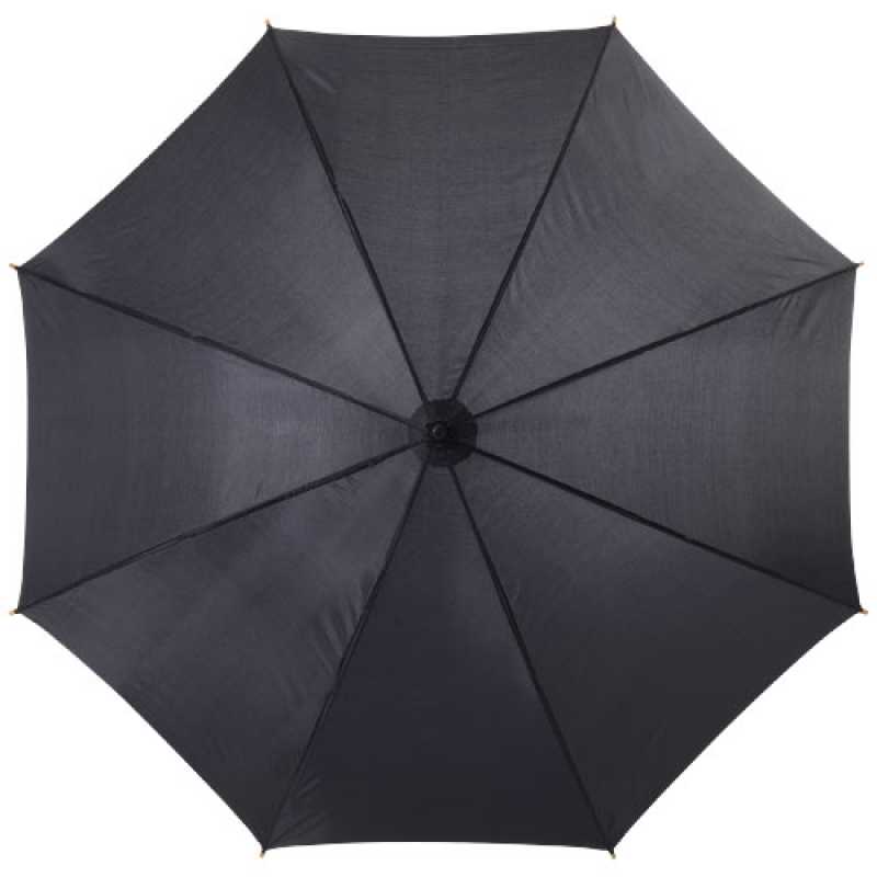 Pokud hledáte stylový deštník, Kyle je tou správnou odpovědí. Automatický systém umožňuje deštník otevřít jedním kliknutím. Deštník se navíc skládá z kovových žeber a elegantní dřevěné násady a rukojeti. Deštník Kyle je k dispozici v různých barvách a poskytuje více možností potisku.
