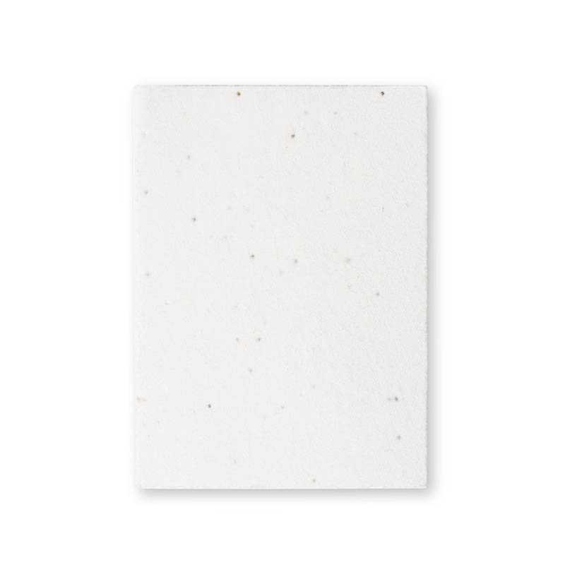 NOVINKA 2025. Nature line notepad, with covers made of recyclable and degradable seed paper. Including petunia seeds on both covers, making it plantable paper at the end of its lifespan. Inside with 50 sticky notes in kraft finish. Flowers in assorted colours, with planting instructions on the back cover and presented in an individual recycled paper bag.