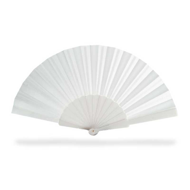 Látkový vějíř s plastovou rukojetí.