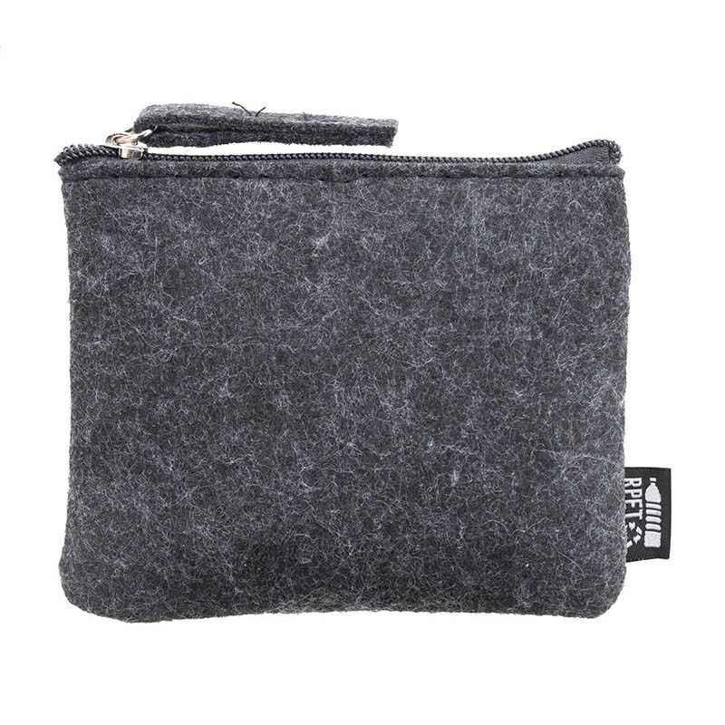 NOVINKA 2025. Peněženka z RPET plsti na zip. S výrazným štítkem RPET.