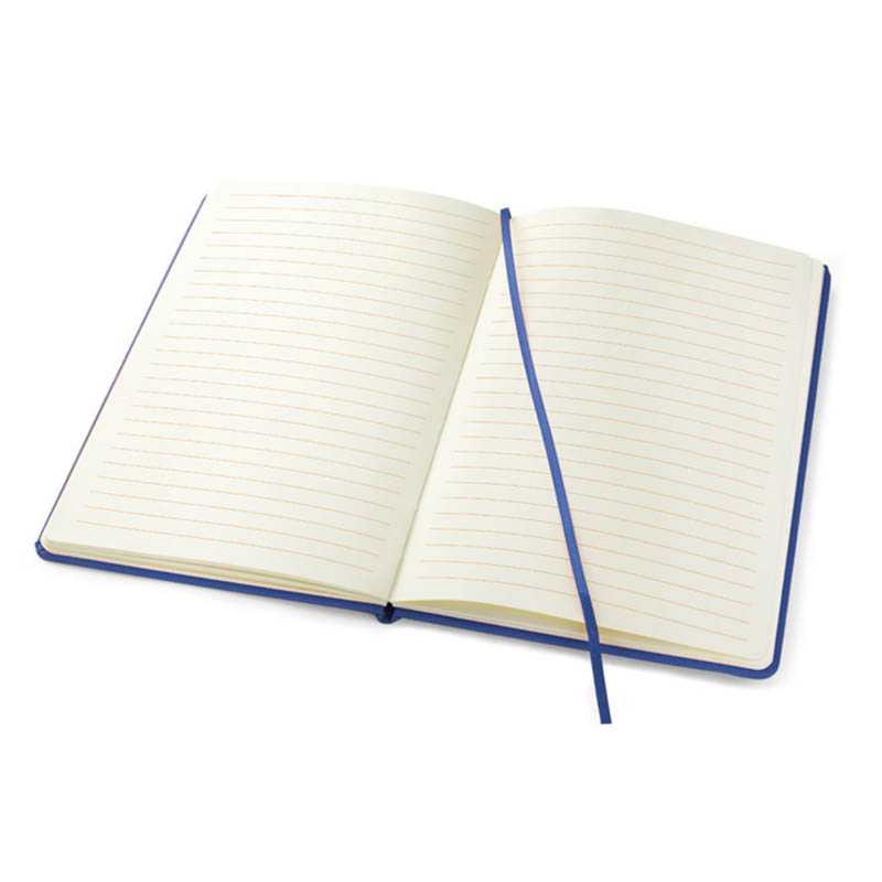Exkluzivní notebook A5 z eko kůže s barevným gumovým uzávěrem. 80 listů podšitých. Linka oranžová barva. Logo je vytištěno na obálce a listy jsou barvy ecru.