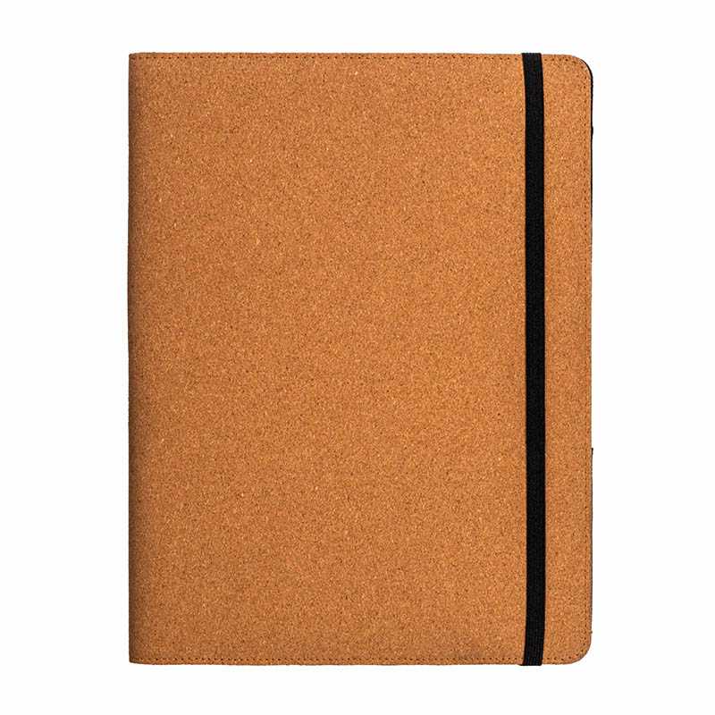 Cork A4 congress folder and organizer with elastic, with 20-sheet striped block and internal pen holder slot