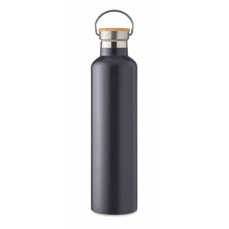 Dvoustěnná vakuová termoska z nerezové oceli s bambusovým víčkem a držadlem na přenášení. Objem: 1000 ml. Bambus je přírodní materiál, může dojít k mírným změnám barvy, dekorace a velikosti.