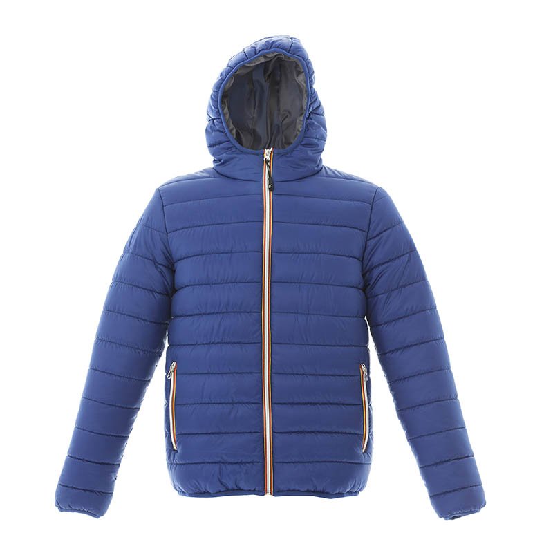 Jacket in soft nylon Ripstop - Soft polyester padding (feather effect) - Soft 320T polyester lining - Adjustable padded hood with drawstring - Two external pockets with zip - An internal zipped wallet pocket - Elastic cuffs with adjustable velcro closure - Drawstring at the bottom