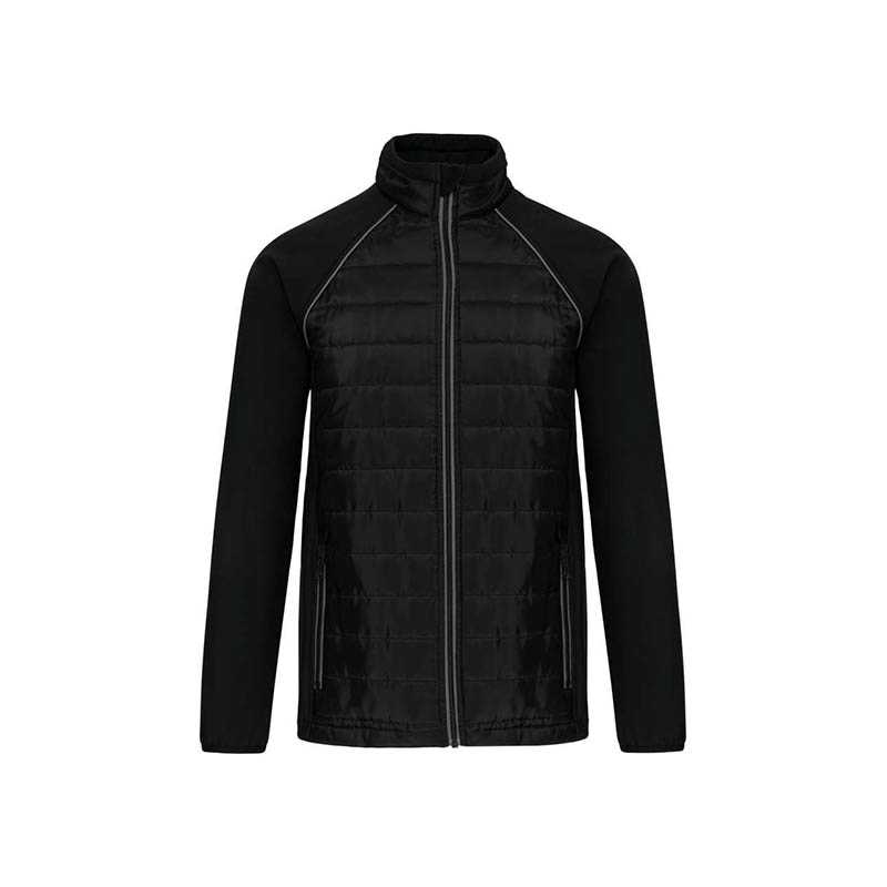 100 % polyester.Polstrovaná podšívka z 100 % z polyesteru.Zapínání na zip.2 přední kapsy s lemováním.Našitá kapsa se zipem s držákem na pero na levém rukávu.Vnitřní kapsa s lemováním.2 x 2 žebrované manžety, lem a průkrčník.1 zip na hrudníku a 1 zip v lemu pro přístup a zdobení.