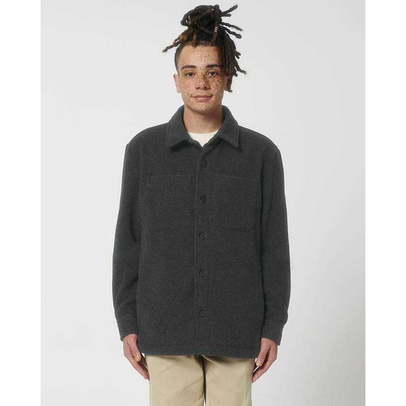 Unlined shirt jacket Set-in sleeve Self fabric collar with collar stand Button down front placket with one button on sleeve cuff Chest pockets and side seam pockets on both sides Inside hanger loop in grosgrain tape Spare buttons attached on inside seam