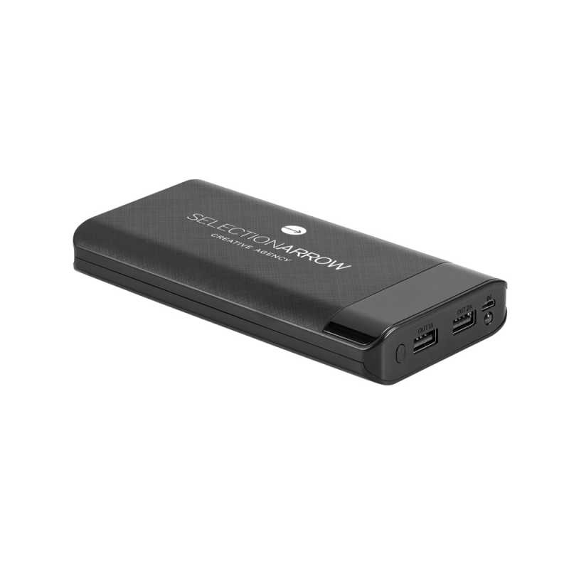 Powerbanka z ABS s LED displejem pro informaci o procentech úrovně nabití. Velkokapacitní přenosná baterie s 16 000 mAh, dvěma vstupními porty, jedním micro USB a druhým USB-C a dvěma výstupními porty USB-A. Baterie má ochranu proti přebití, zkratu a přehřátí. Součástí je nabíjecí kabel USB-C. Dodáváno v dárkové krabičce. 156 x 80 x 23 mm | Krabička: 185 x 108 x 45 mm