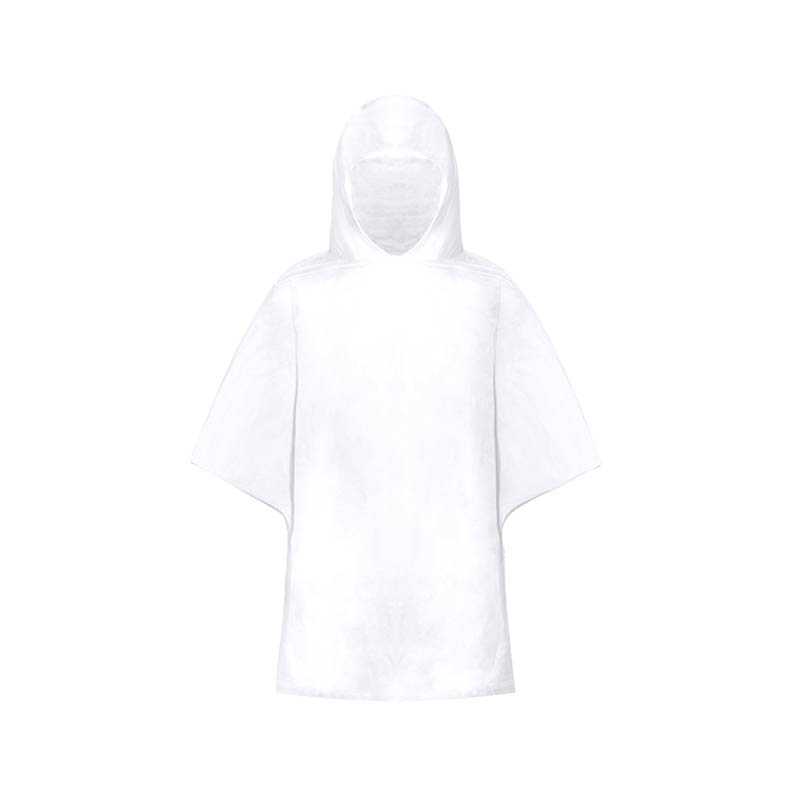 Water-resistant, embossed PVC (260 g) poncho, supplied in a transparent bag. One size