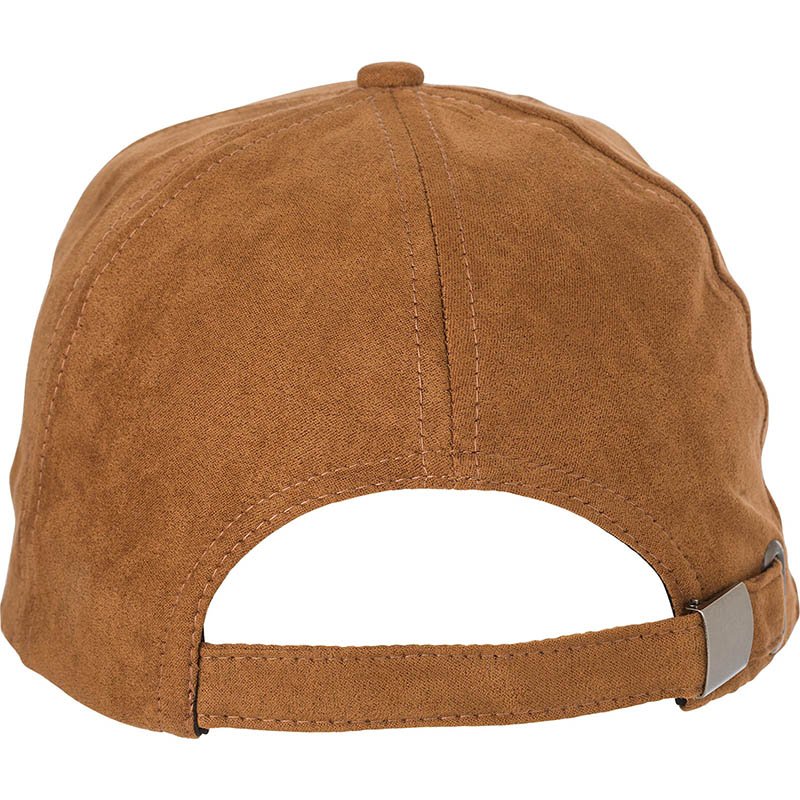 NOVINKA 2025. Suede cap with six panels and a metal buckle closing in the back. Holes in the front of the panel on the top side.