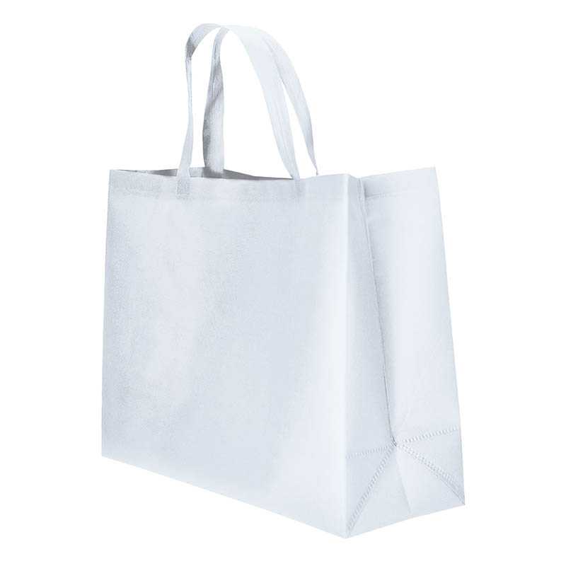 Extra-Large Medium-Handled Gusseted Non-Woven Fabric Bag. Made of lightweight and water-repellent non-woven fabric with embossed finish. Hemmed top contour and handles with heat-sealed cross-shaped reinforcement at the junction point for added strength. Gusseted sides and corners to provide greater capacity. With volume of 43 litres and a load capacity of approximately 30 kg. Suitable marking methods: screen printing. Ideal for a corporate gift, a personalised gift and daily use.