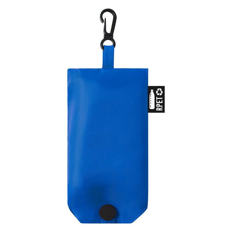 Skládací nákupní taška z RPET polyesteru, s etiketou s označením RPET.