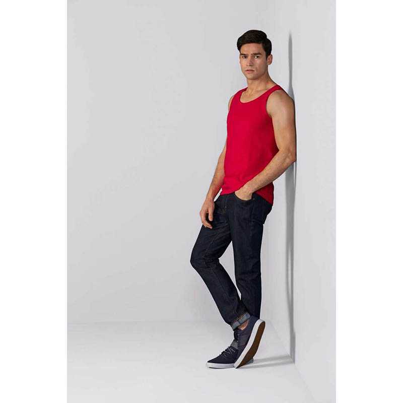 153.0 G/SqM (White 144.0 G/SqM);100% Ring Spun Cotton;In transition to 100% Combed Ring Spun Cotton;Cotton/polyester mix for several colors;Eurofit - sleeker fit in shoulder and sleeve;High stitch density for smoother printing surface;6.5 cm straps;Rib knit trim applied to neckline and armholes;Tearaway label;Quarter-turned to eliminate centre crease;