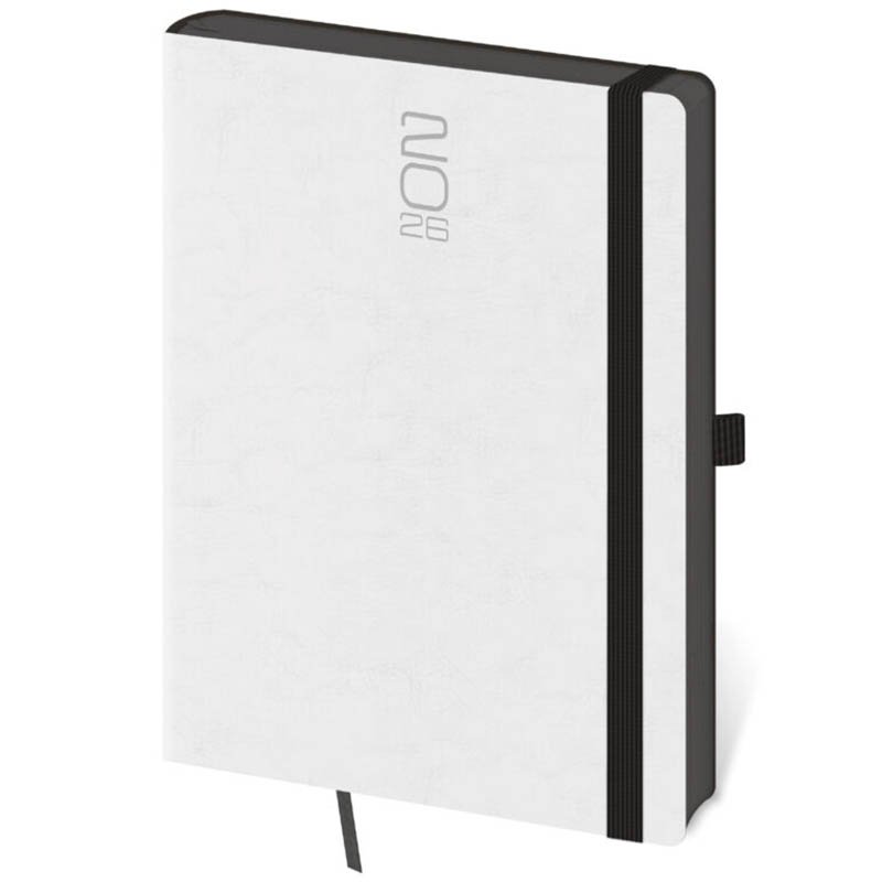 Denní diář A5 Memory bílý s gumičkou. Formát diáře: 145 x 205 mm. Rozsah diáře: 352 stran. Kalendárium: denní. + praktická kapsička. + poutko na tužku. + ořízka v černé barvě. + papír bloku chamois