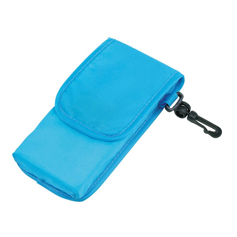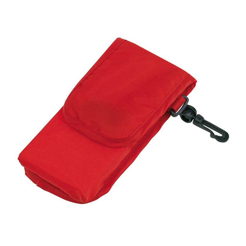 Polyester (190T) foldable shopping bag in a pouch with belt clip.