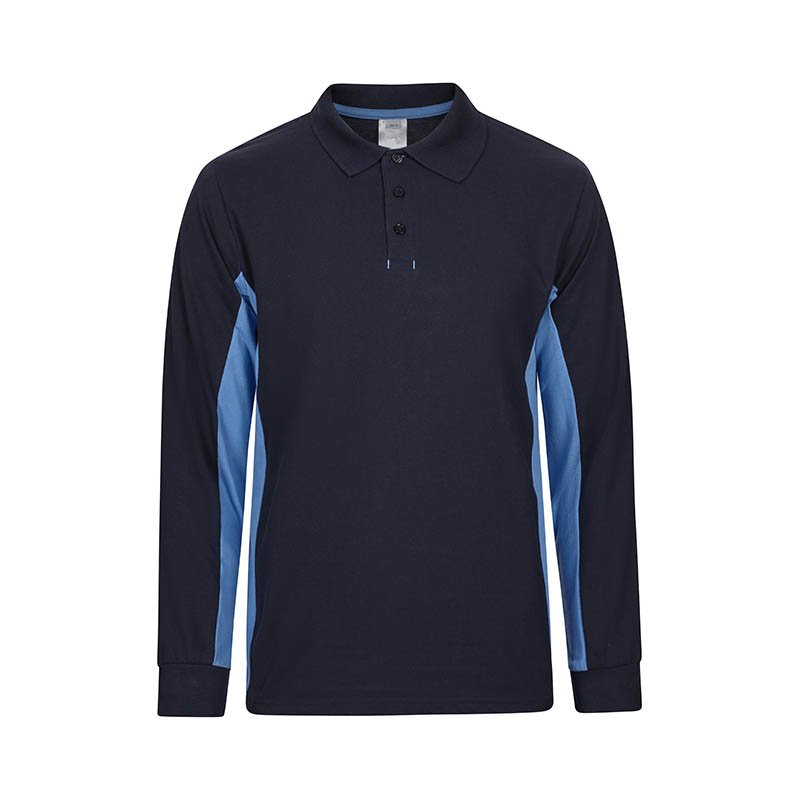 Button closure at front Ribbed collar and cuffs Contrasting colours at the sides, inner sleeve and inner placket and neck tape